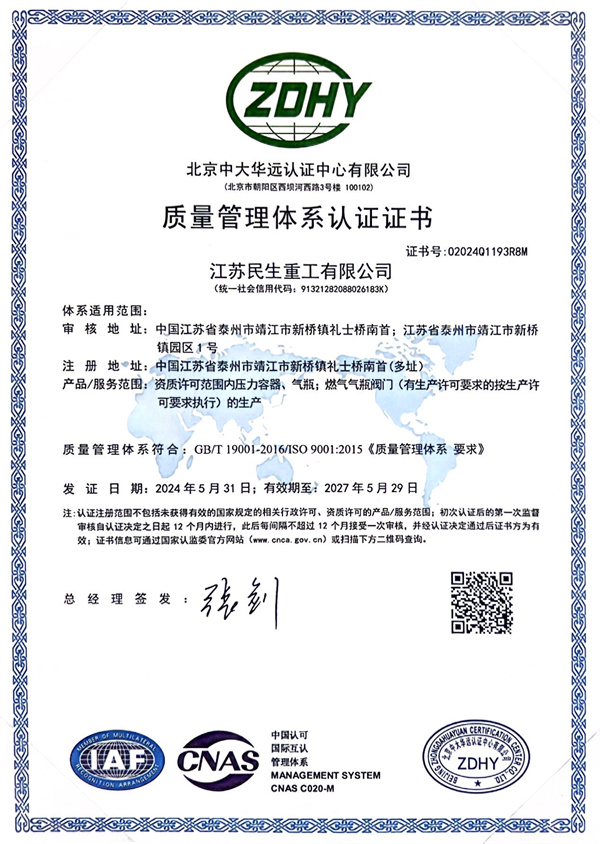 ISO9001質(zhì)量管理體系認證證書