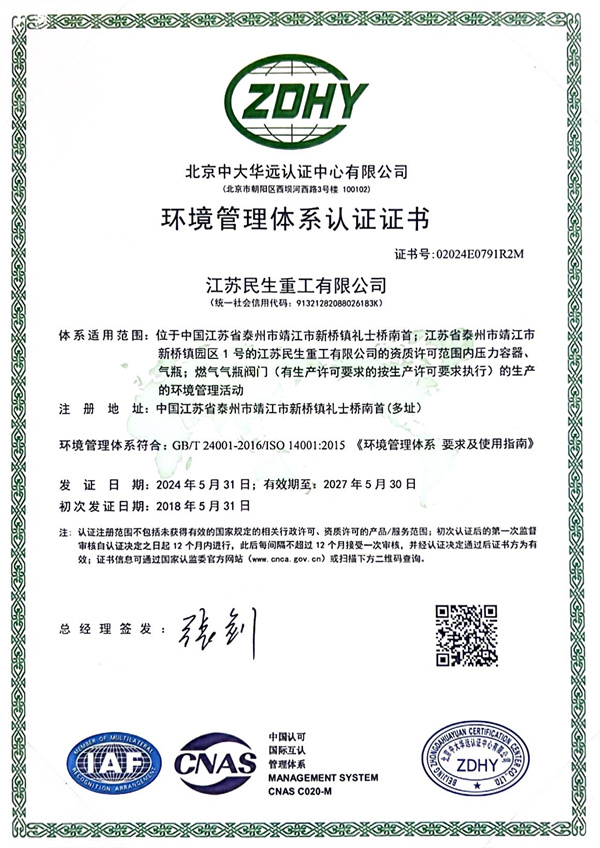 ISO14001環(huán)境管理體系認證證書