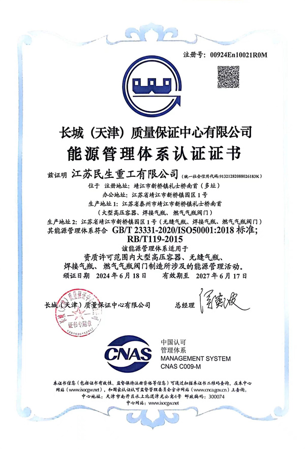 ISO50001能源管理體系認證證書